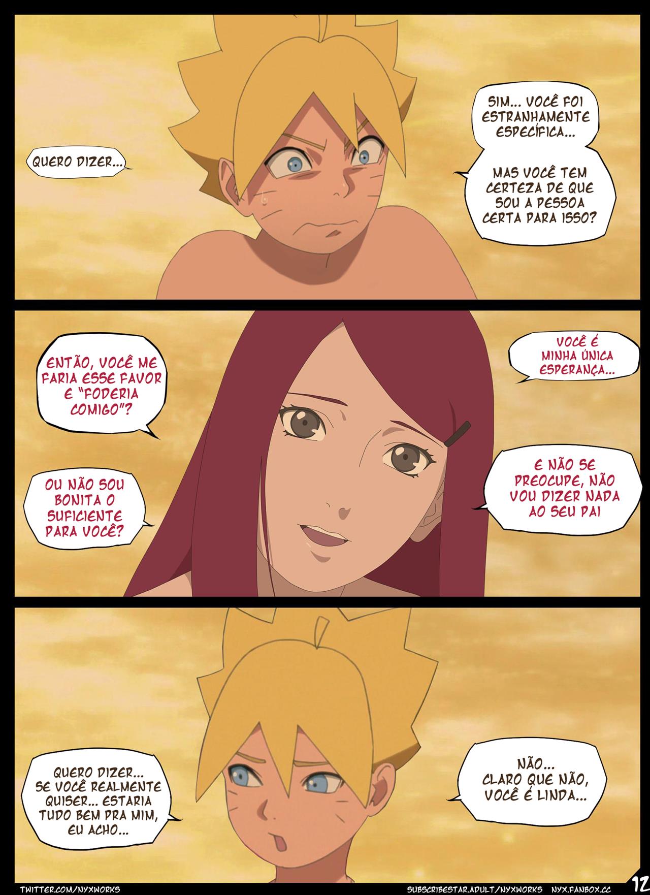 Nesta HQ hentai +18, Boruto acaba se deparando com alguém inesperado: Kushina. Embora ela seja do passado, a cena que se segue é pura provocação. Ao mesmo tempo que o jovem ninja sente curiosidade, também é tomado por um desejo que nunca havia experimentado antes.