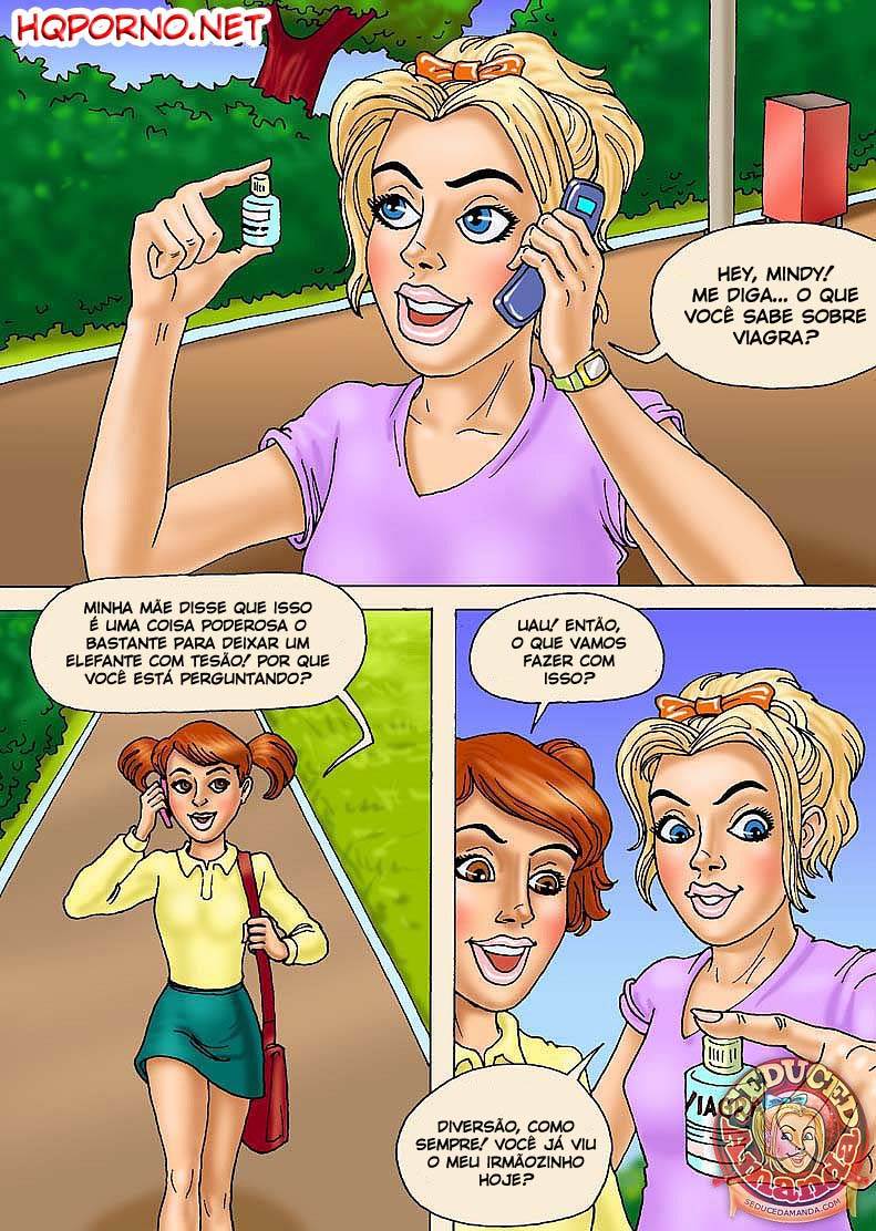 Neste Hq Amanda acaba lendo sobre viagra em uma revista e resolve testar um viagra muito poderoso no seu irmãozinho. É claro que ela convida uma amiga sua para o seu experimento safado como será que foi a experiência?